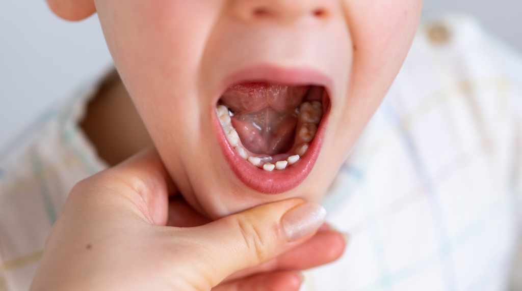 正しい舌の位置は、舌全体が上顎にぴったりとついている状態です。舌がこの位置にあると、自然と口が閉じ、鼻呼吸ができます。しかし、舌が下がった位置にあると口が開きやすくなり、「お口ポカン」の状態が続いてしまうのです。