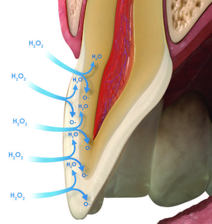 過酸化尿素と過酸化水素がエナメル質および象牙質に浸透し、