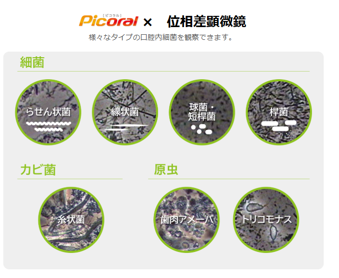 歯周病菌(スピロヘータなど)や虫歯菌、カビ(カンジダ)などの種類・量・活動性を確認し、